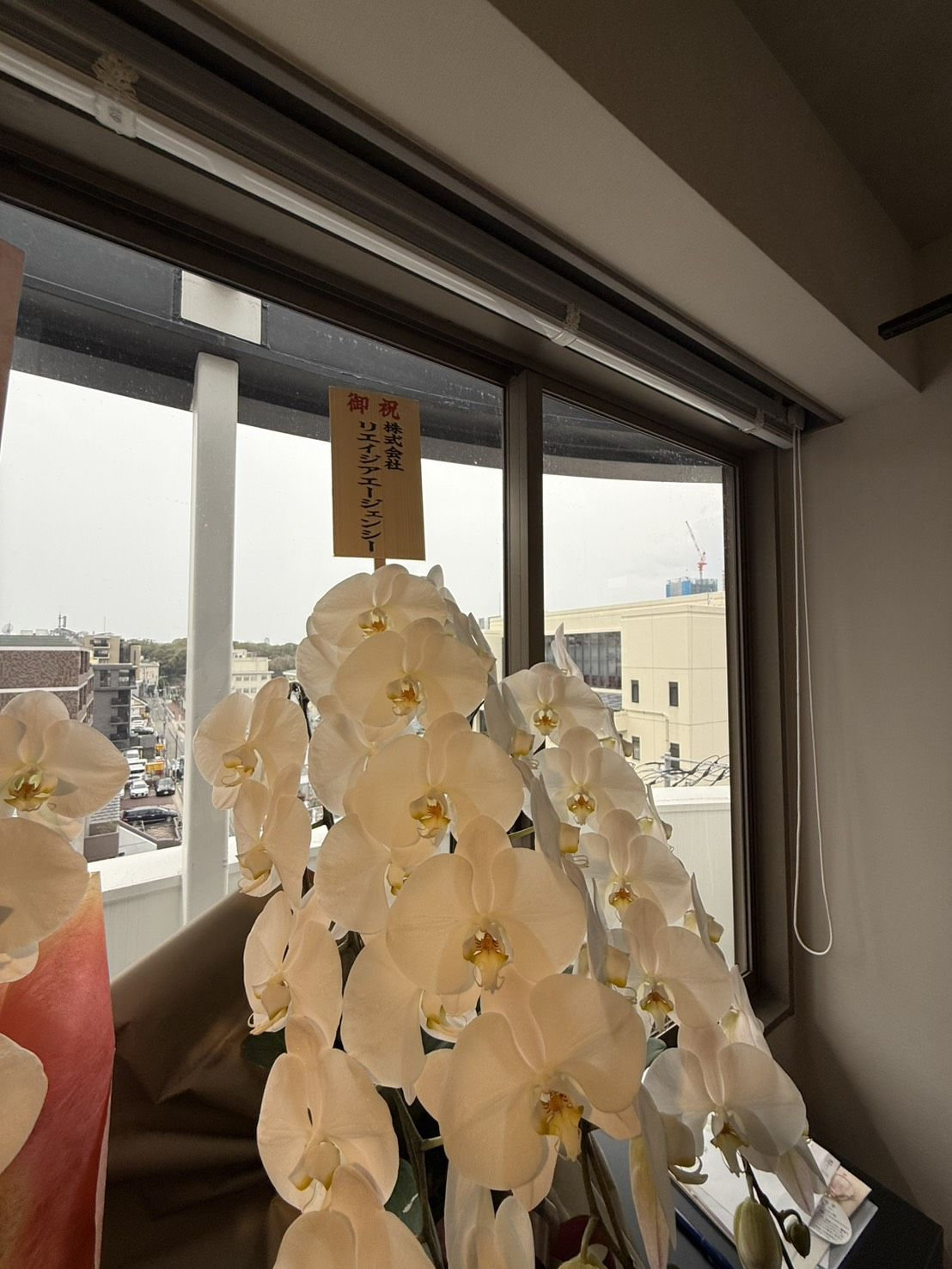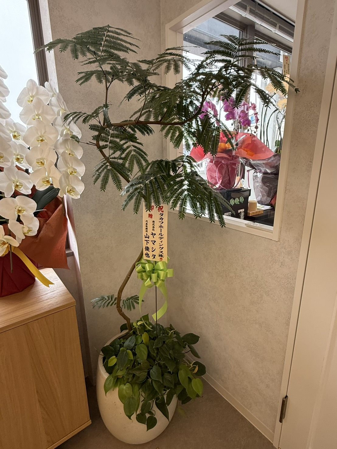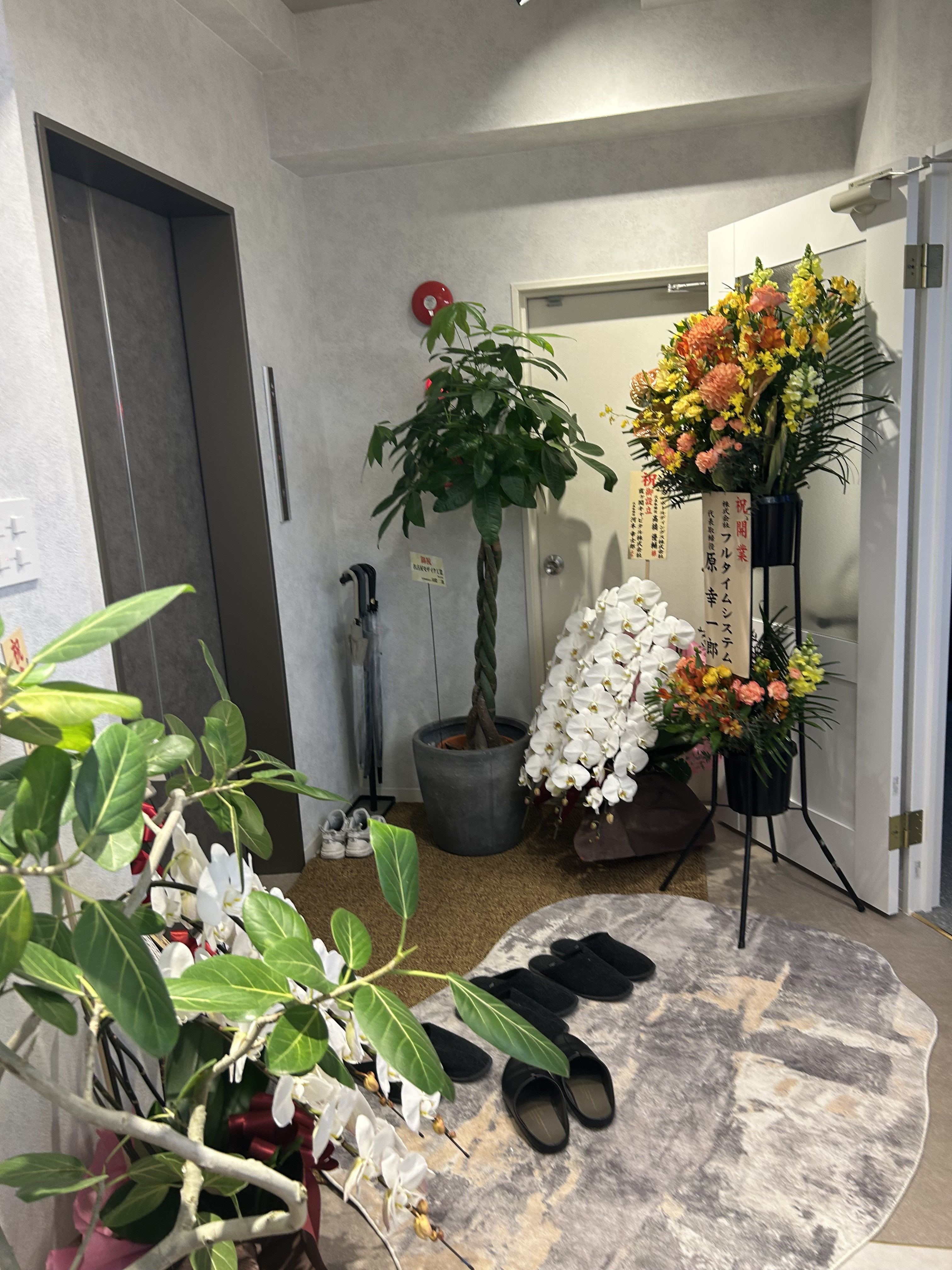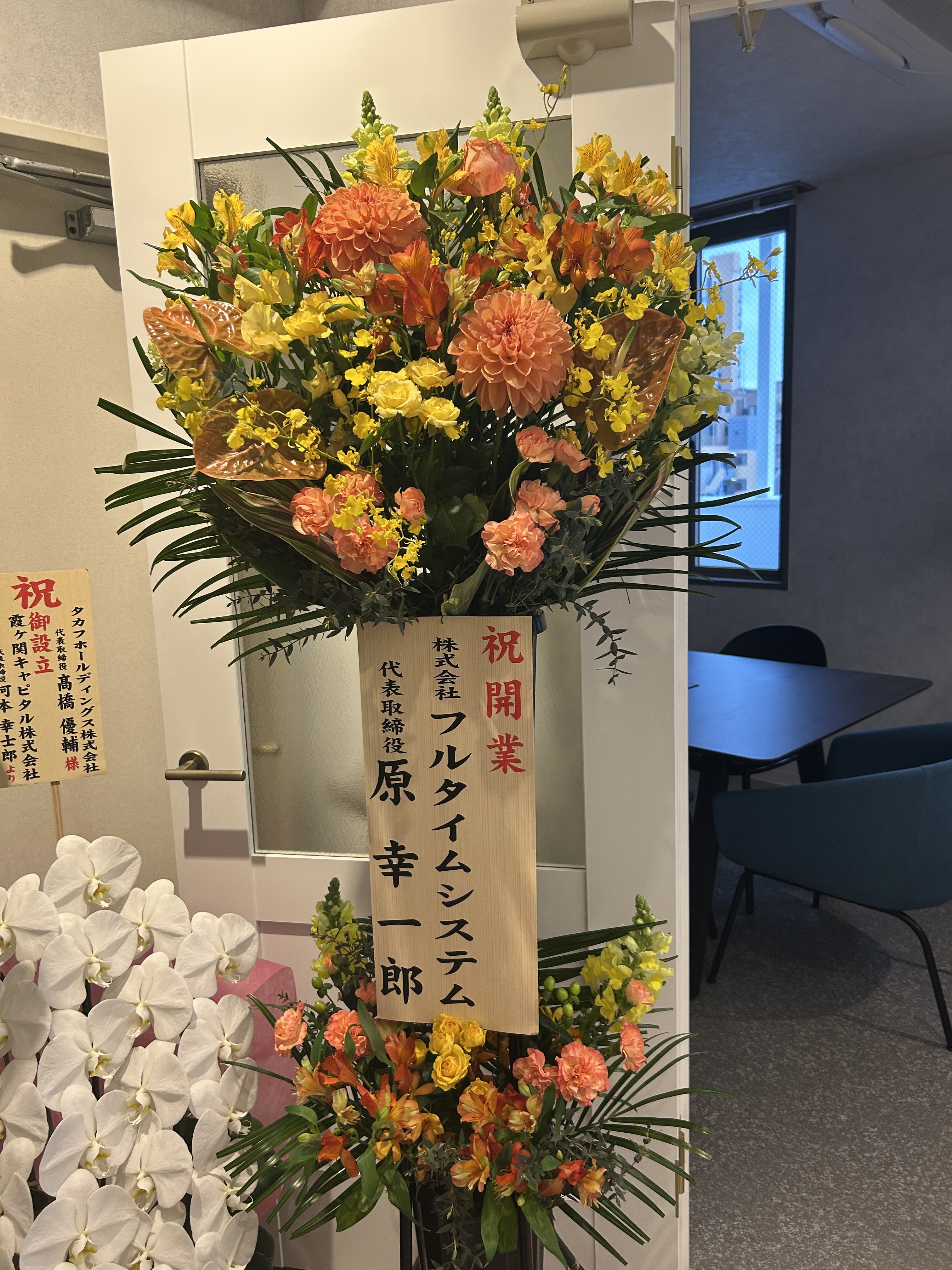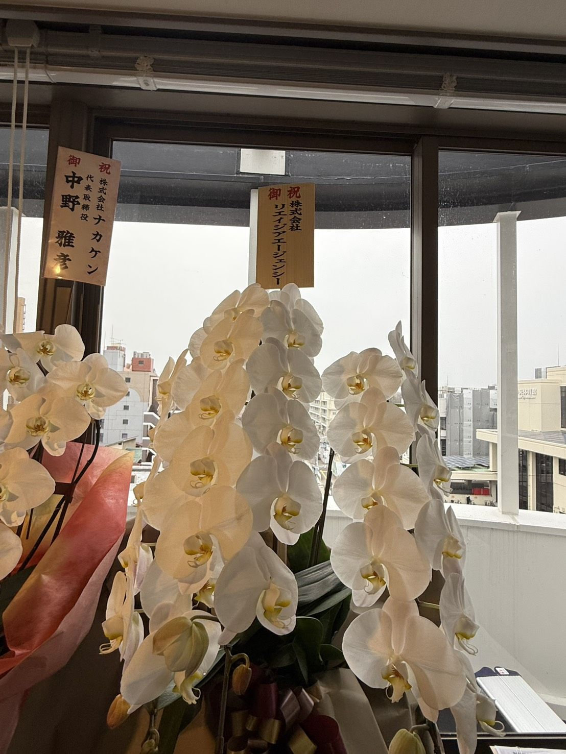 オフィスには、皆さまからいただいた色鮮やかなお花や心のこもったお品物が並び、新しい空間が非常に華やかで活気に満ち溢れております。