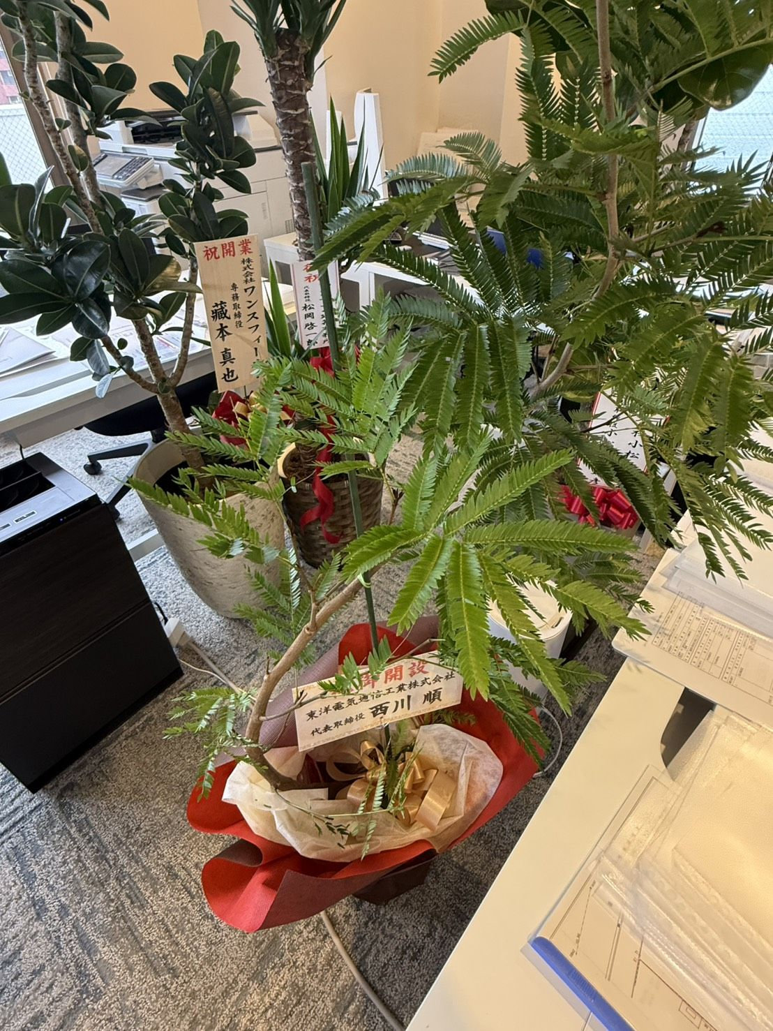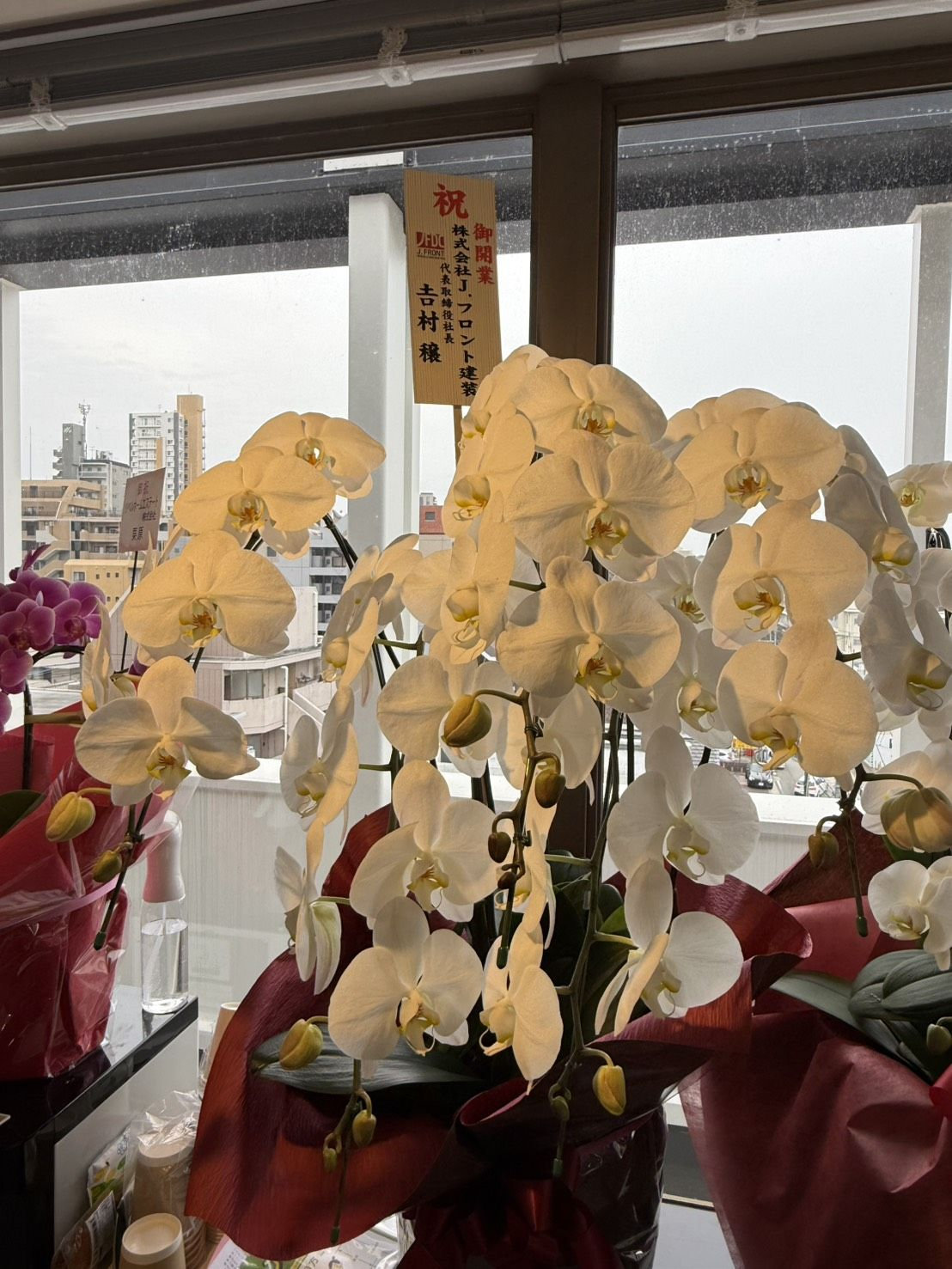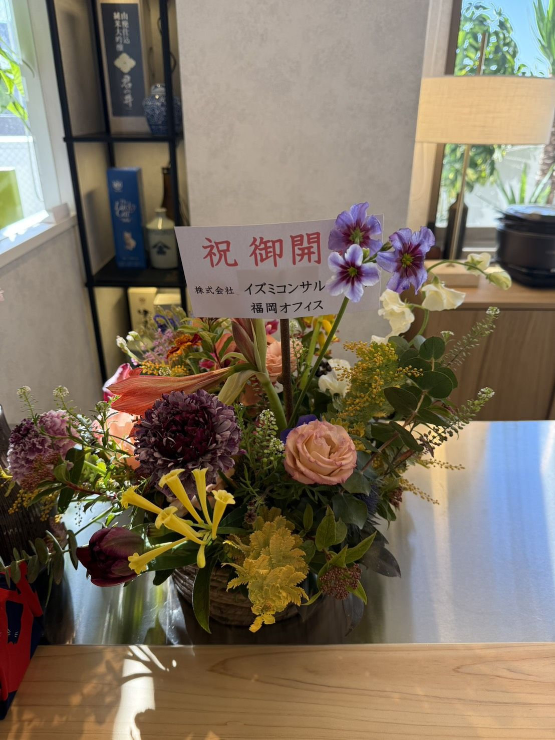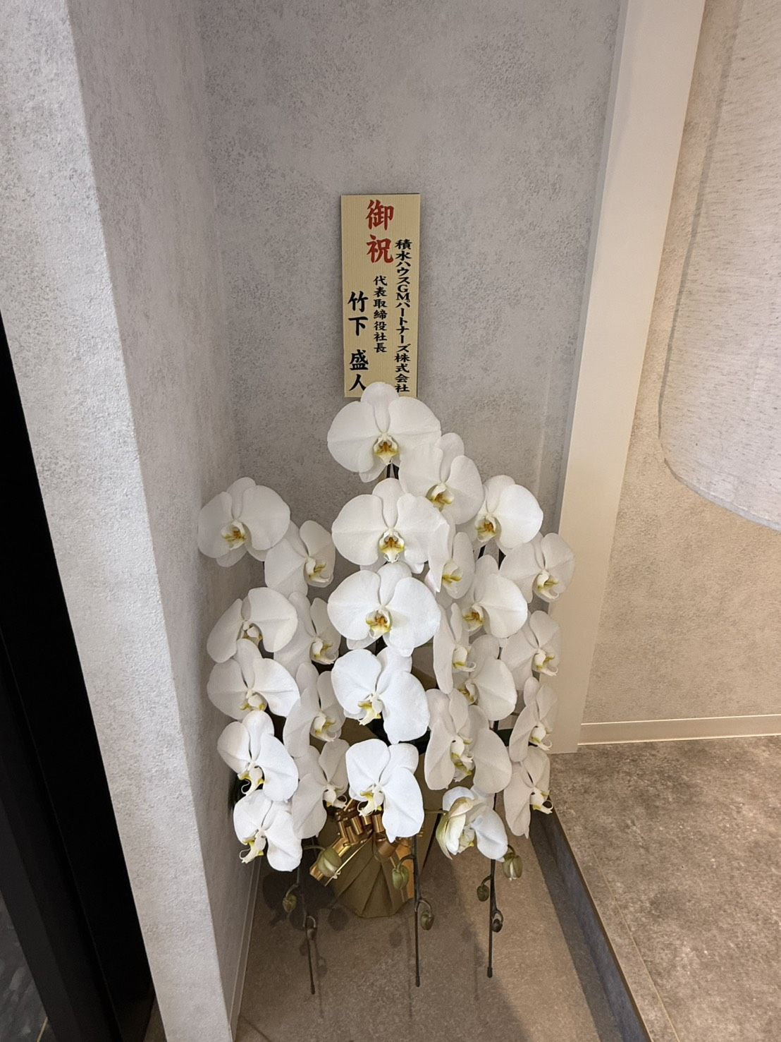 オフィスには、皆さまからいただいた色鮮やかなお花や心のこもったお品物が並び、新しい空間が非常に華やかで活気に満ち溢れております。