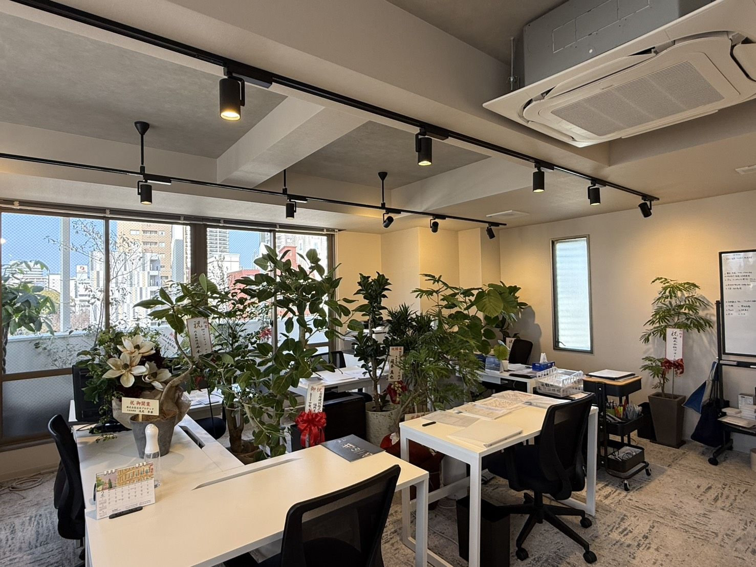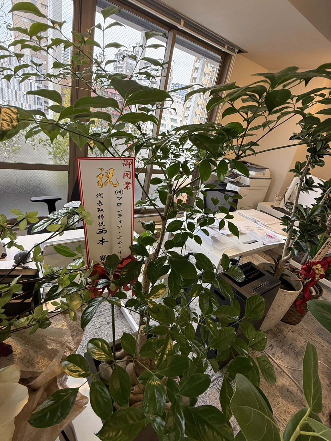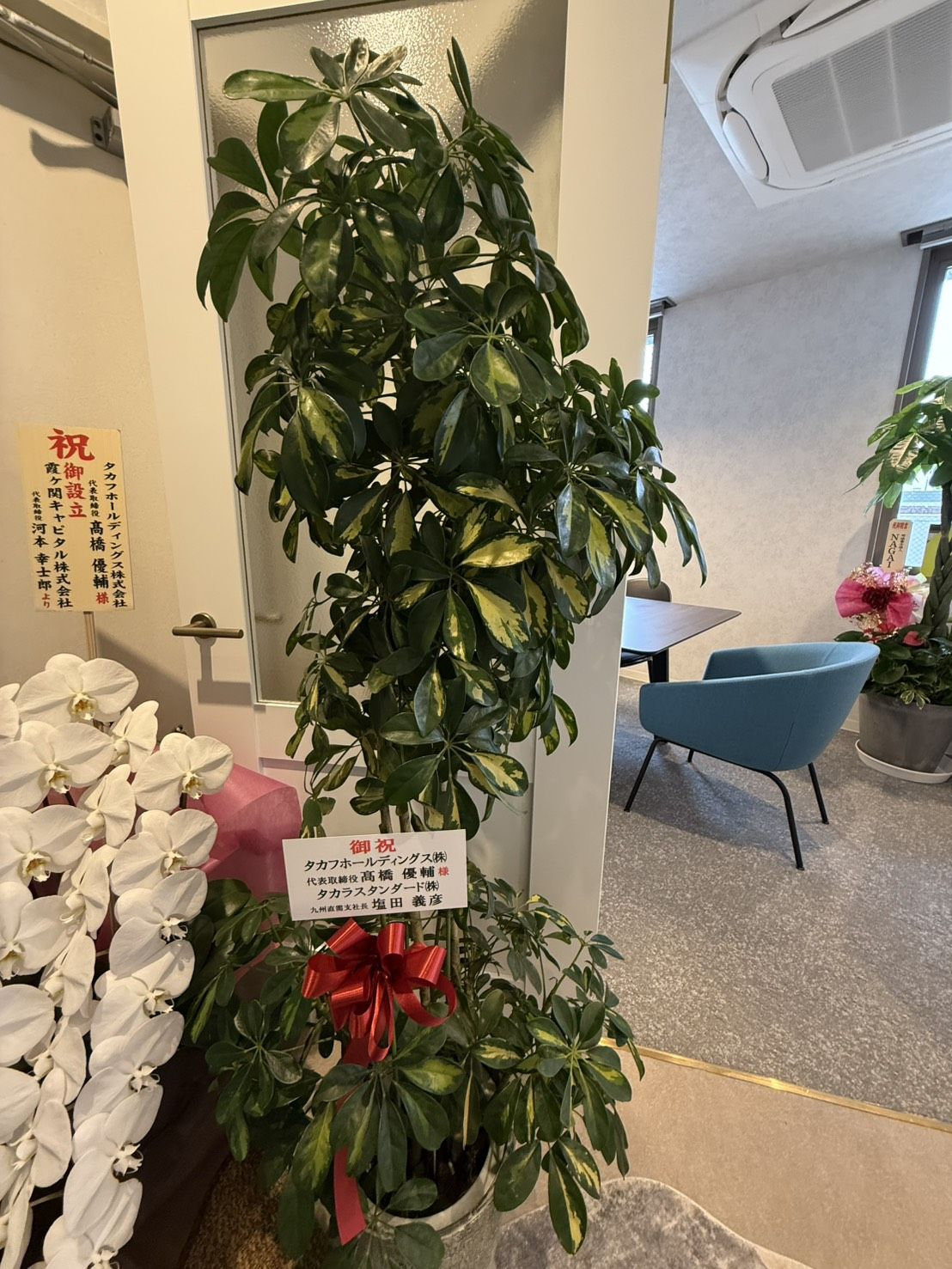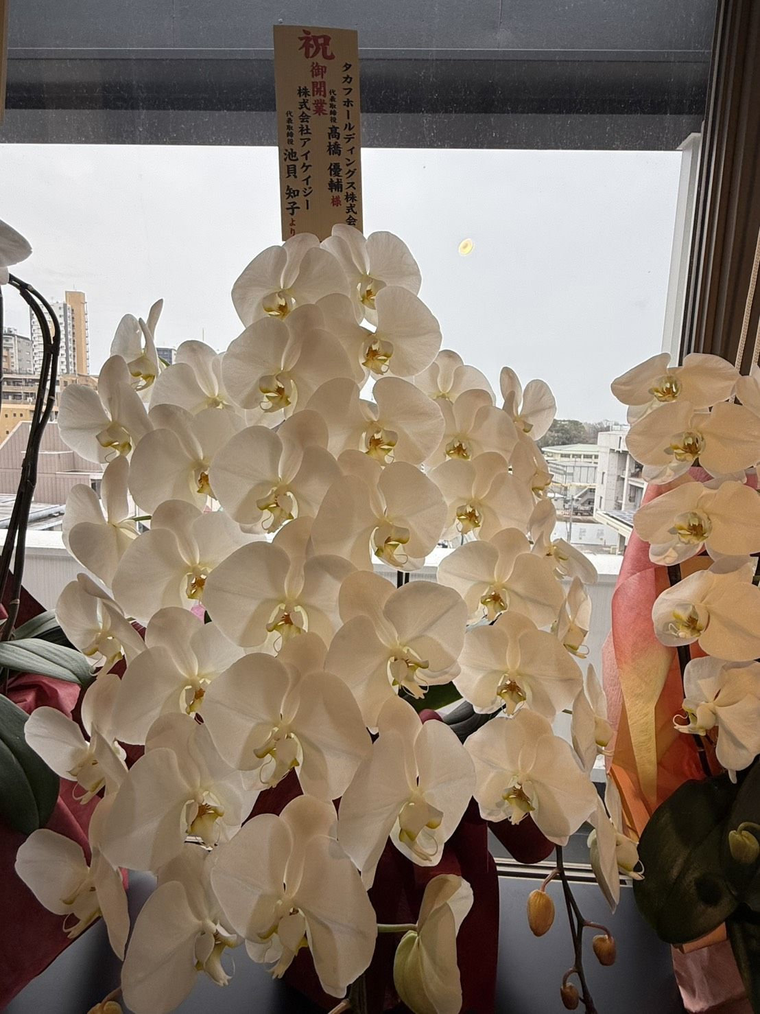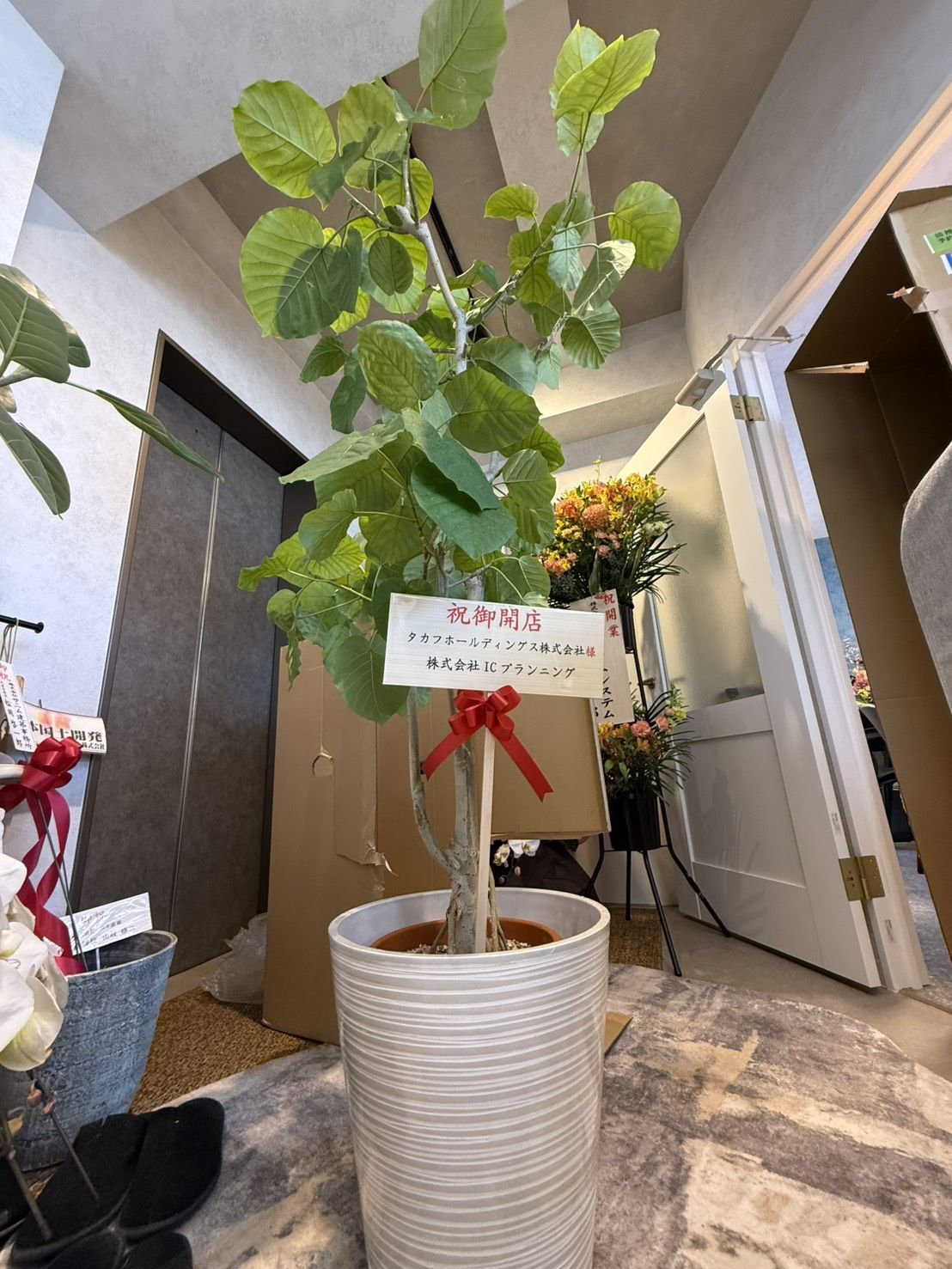 オフィスには、皆さまからいただいた色鮮やかなお花や心のこもったお品物が並び、新しい空間が非常に華やかで活気に満ち溢れております。