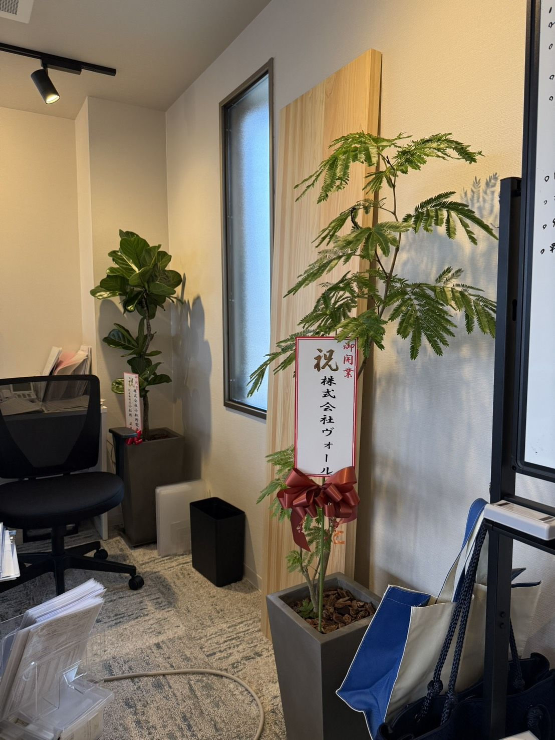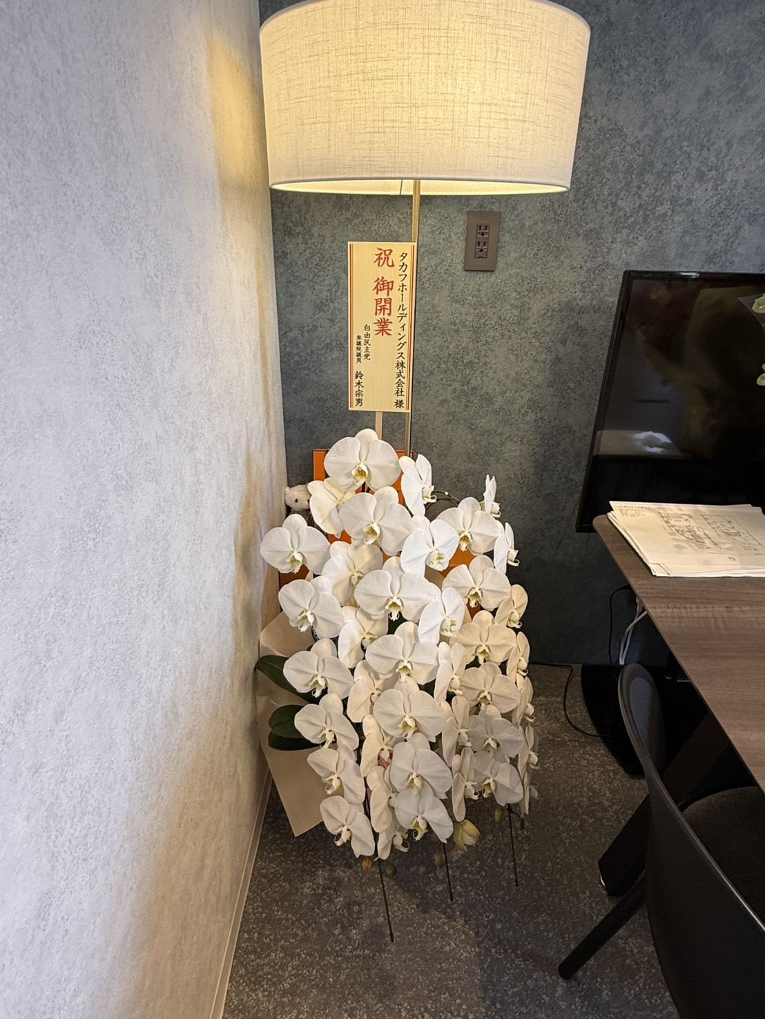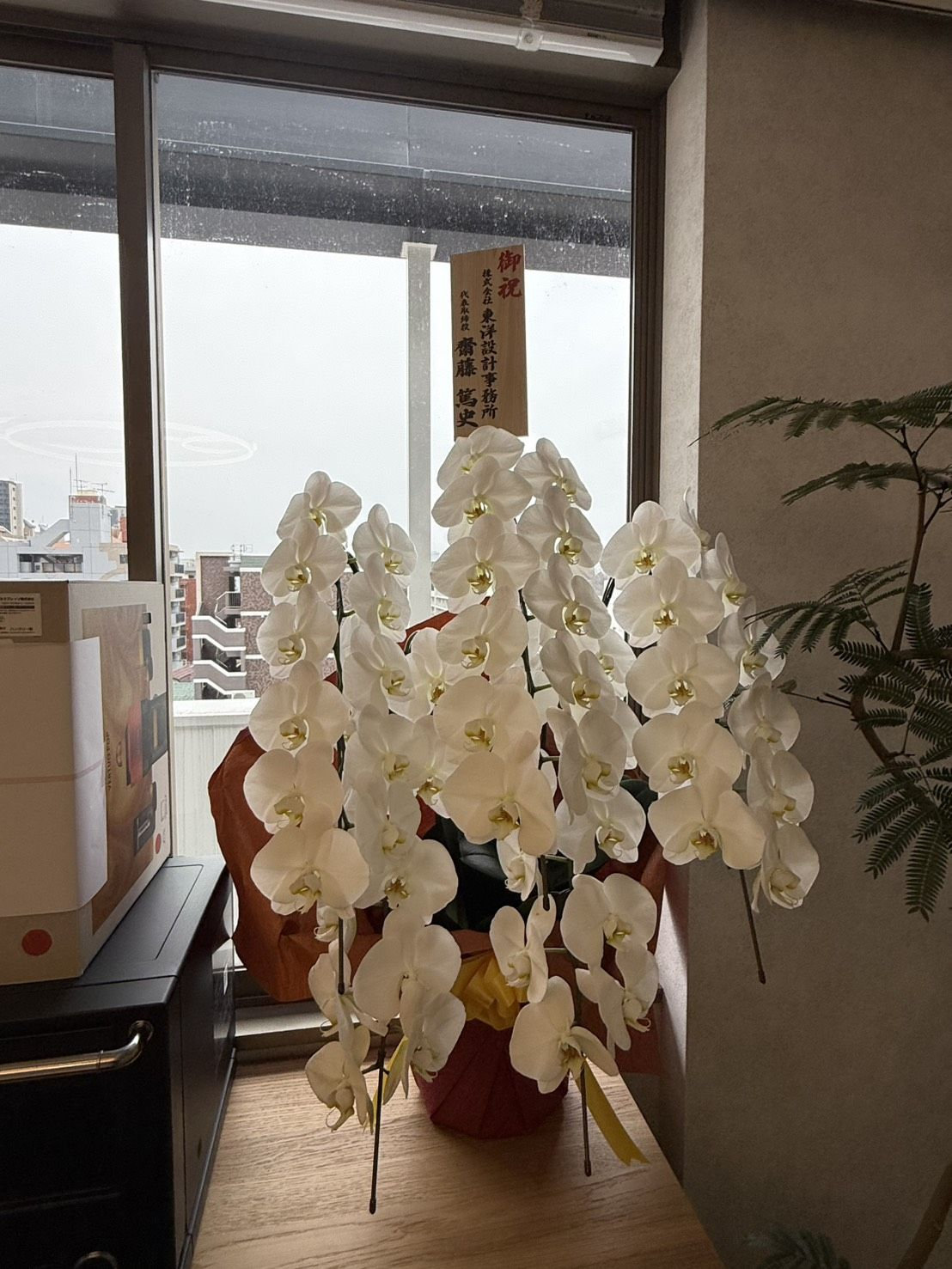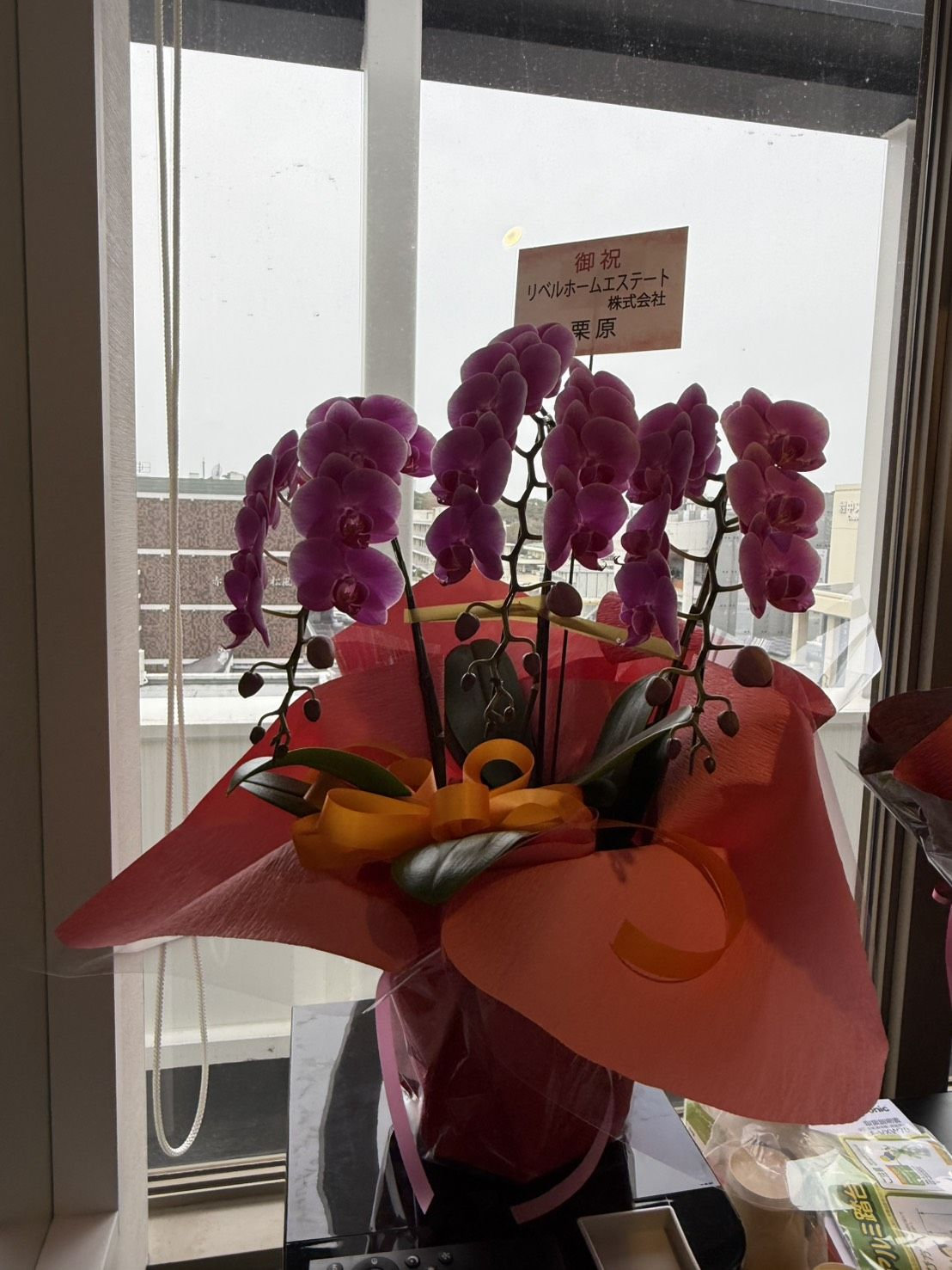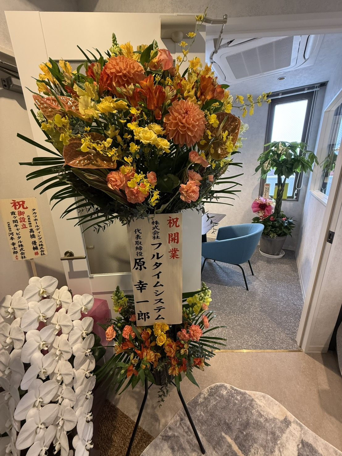 オフィスには、皆さまからいただいた色鮮やかなお花や心のこもったお品物が並び、新しい空間が非常に華やかで活気に満ち溢れております。